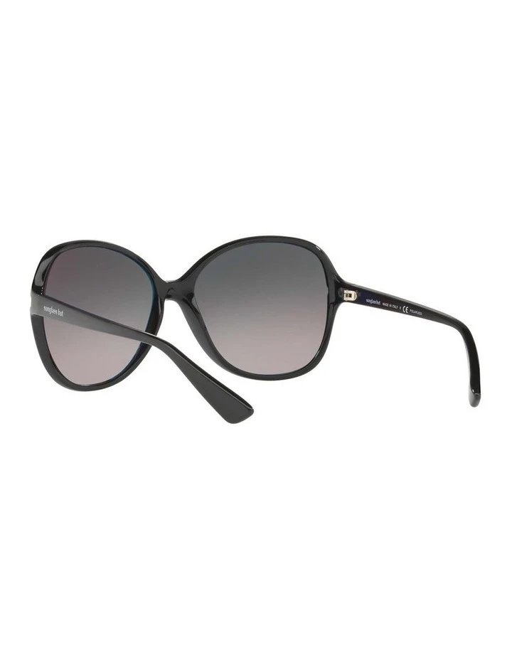 Sunglass Hut phantos black nylon sunglasses with light grey/grey polarised gradient lenses. Come in a designer-stamped case.