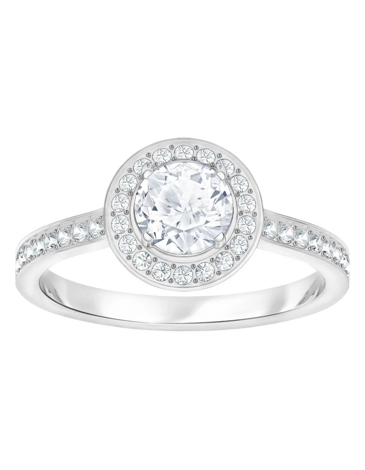 Make your feelings clear with this romantic ring. Timelessly elegant, the easy-to-wear design combines rhodium plating with brilliant Swarovski sparkle. Mix and match with other jewelry pieces to create your personalized style story.