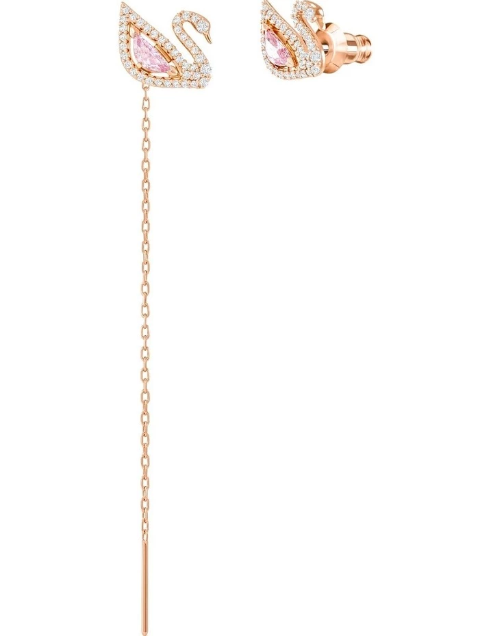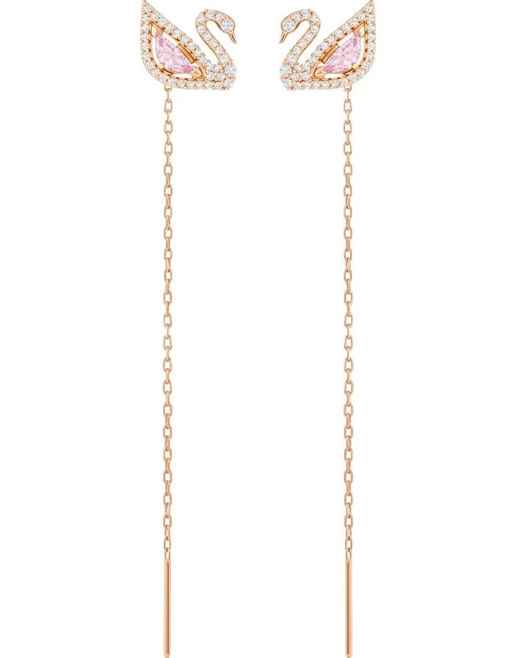 Enjoy multiple looks with this dazzling pair of versatile long-length pierced earrings. The iconic swan motif shines with a full-cut crystal body in cool millennial pink and crisp clear pav lines. Wear as simple studs, or attach one, or both, of the delicate rose gold-plated chains for more statement style. A dainty design that will undoubtedly add cool and romantic style to your everyday collection. Matching items are available.