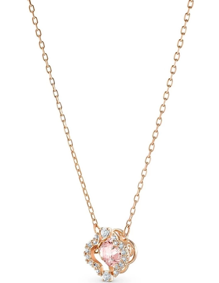 This Swarovski necklace sparkles with a charming floral design. From our much-loved Sparkling Dance collection, it features a pink dancing stone in the shape of a clover, which appears to float inside its setting and is complemented by the rose-gold tone plated chain. This piece of jewelry will pair well with casual outfits and is a great gift for a special someone.