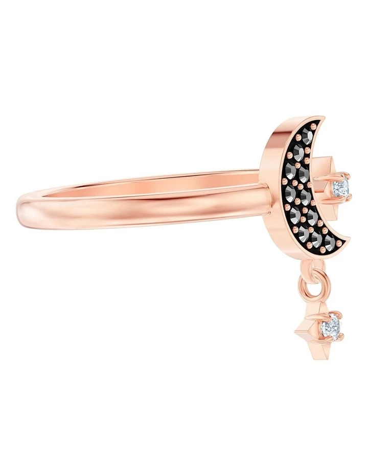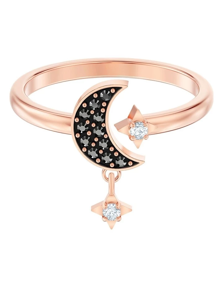 Take style inspiration from the mystical night sky this season with this cool-classic open ring. Featuring moon and star motifs, which symbolize hopes and dreams, the rose-gold tone plated design glitters with black crystals set in pavé. Ideal for everyday wear, or an original gift idea.