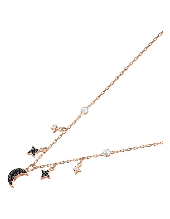The beauty of the moon and stars is stunningly captured in this coolly romantic rose gold-plated necklace. Dripping with crystal-laden symbolism in dark and light tones, this astronomically-inspired design feels both bohemian and luxurious. Perfect for layering with other necklaces in your collection, it can also be accessorized with the matching bracelet and ring.