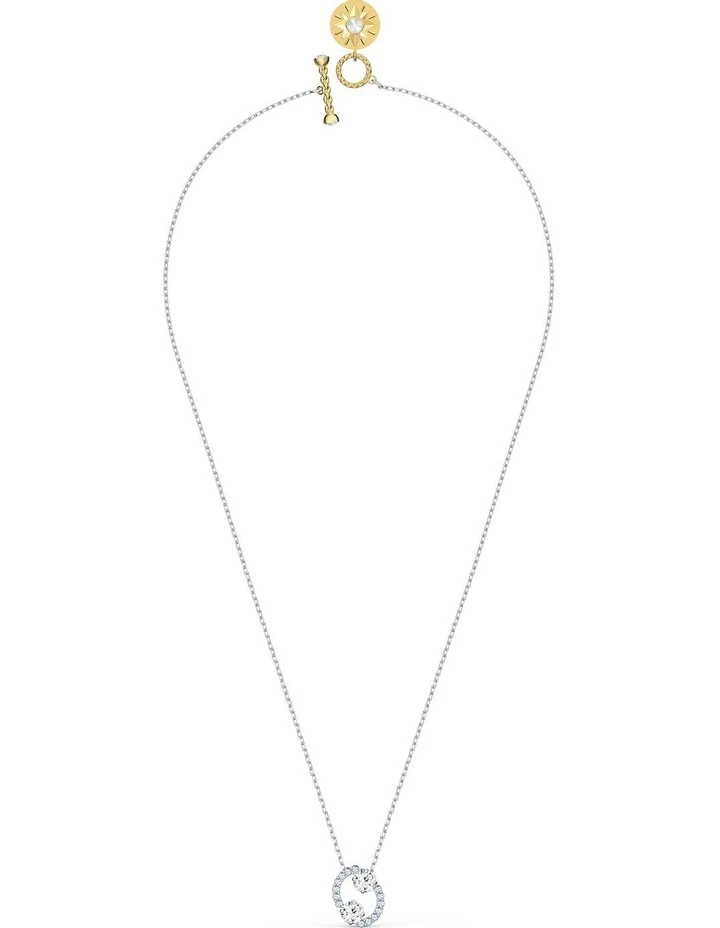 This pendant by Swarovski is inspired by the sign of Cancer. Representing tenacity and persuasiveness, it depicts two stylized shears in sparkling clear crystal pavé centered around a white stone, evoking the stars of the zodiac. The complementary chain is fastened with a t-bar closure that is adorned by a shimmering coin displaying a sun on one side, with elemental symbols on the flip side. Wear the closure at the back or the front, either with the zodiac motif or without it to create many different looks: ideal to personalize your style, especially when layered with matching pieces of jewelry. A perfect gift for those born under Cancer.