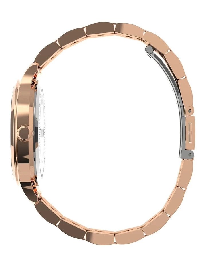 Chicago Chrono collection is both strong and refined and draws inspiration from the architecture and culture that is Chicago. The watch features a 45mm rose gold tone case, white Chronograph dial and stainless steel bracelet.