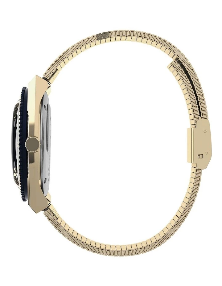 First released in the 1970s, our original Q Timex gave a new generation a modern watch with quartz technology. A natural evolution of our much-loved Q Timex 1979 Reissue watch, this adds bright pops of colour to the iconic features of the original. A rotating bezel, woven stainless-steel bracelet, functional battery hatch and domed acrylic crystal. It’s everything you already loved, and then some.