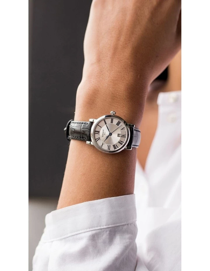 The Tissot Carson Premium Lady is truly a timeless piece, offering a combination of simplicity and robustness. This classic watch, with its elegant dial and elongated fine hands, is designed to suit any time and place.