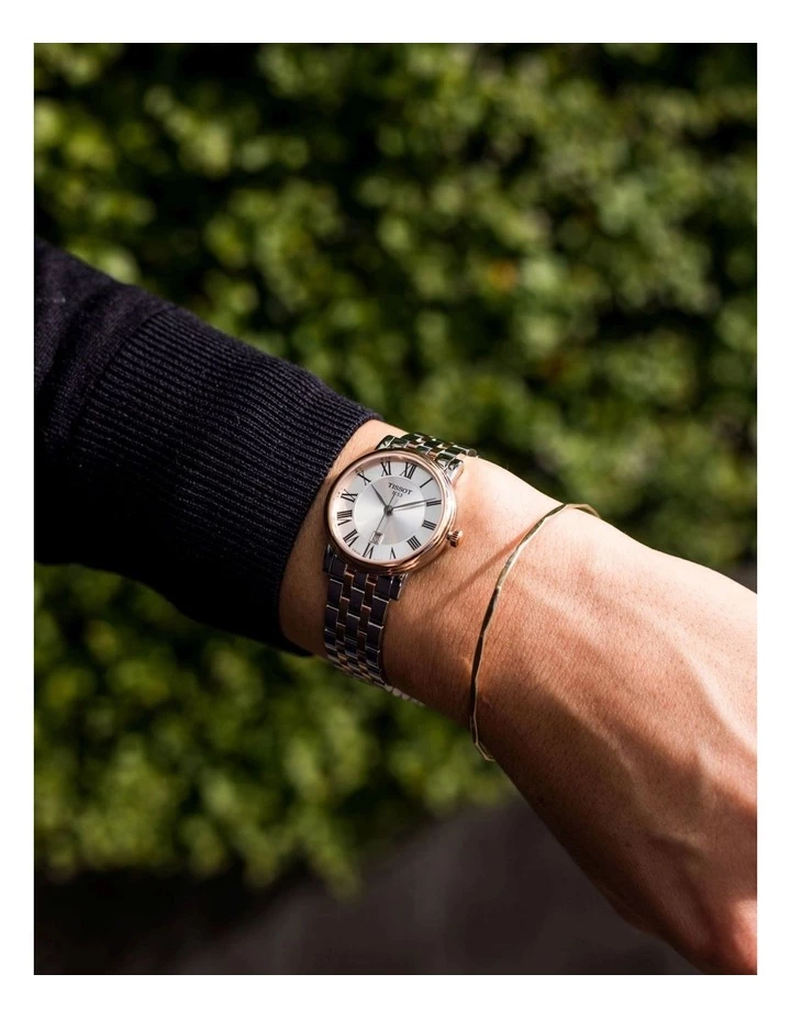 The Tissot Carson Premium Lady is truly a timeless piece, offering a combination of simplicity and robustness. This classic watch, with its elegant dial and elongated fine hands, is designed to suit any time and place.
