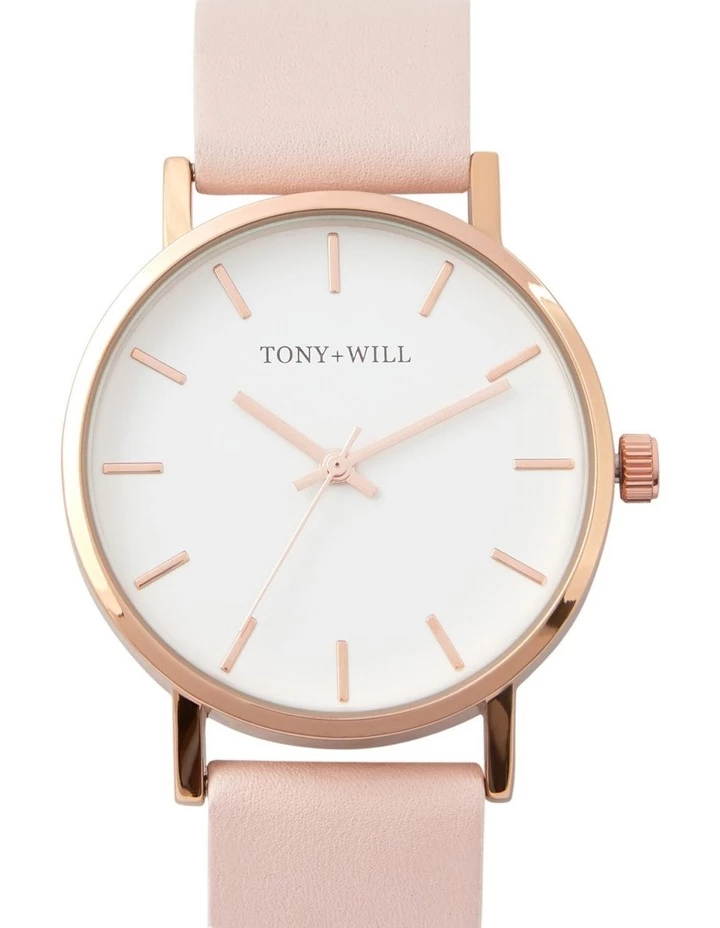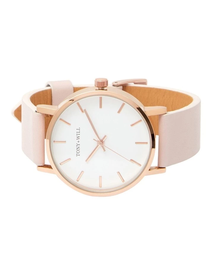 The Classic TWT004D watch by TONY+WILL is the perfect everyday watch you have been searching for. A minimal piece for any occasion or outfit, it is designed with a rose gold case, a white watch face, minimalist markers and a premium genuine light pink coloured leather band that is comfortable on the wrist.