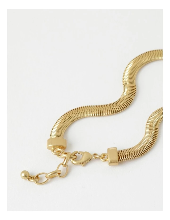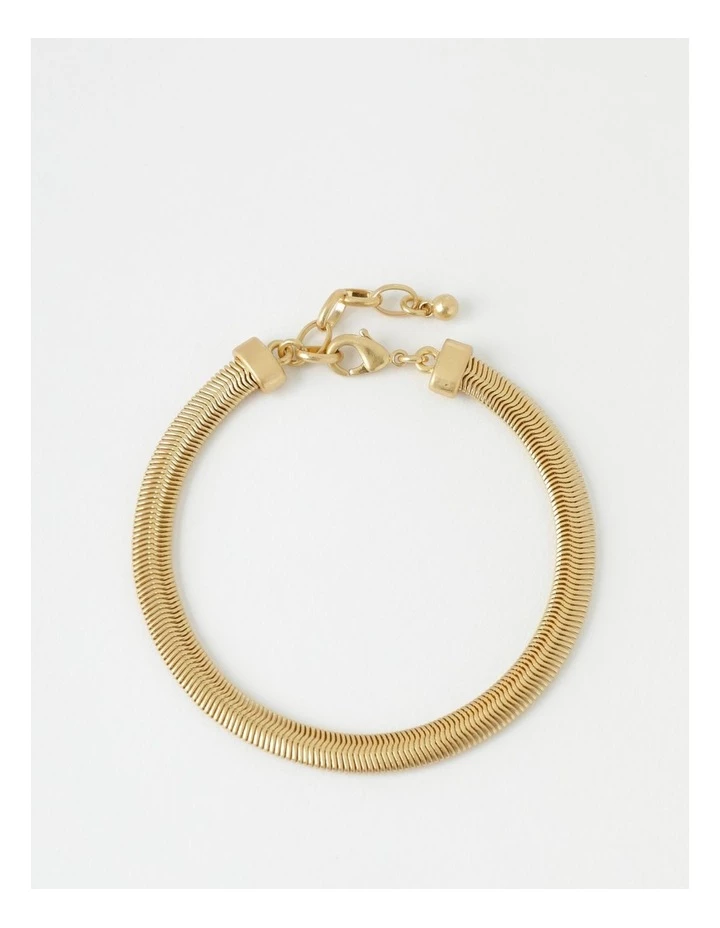Elevate your look with a fashion forward bracelet. This bracelet is gold toned and boasts a thick herringbone chain. Style with your favourite gold toned jewellery for a chic evening ensemble