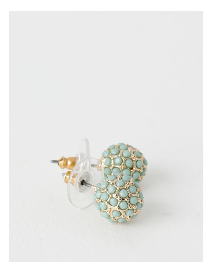 Add the perfect finishing touch to your look with a pair of beautiful studs. These earrings have a dome-shaped design, adorned with turquoise stones in a pave setting. Pair with your favourite gold jewellery for maximum impact.