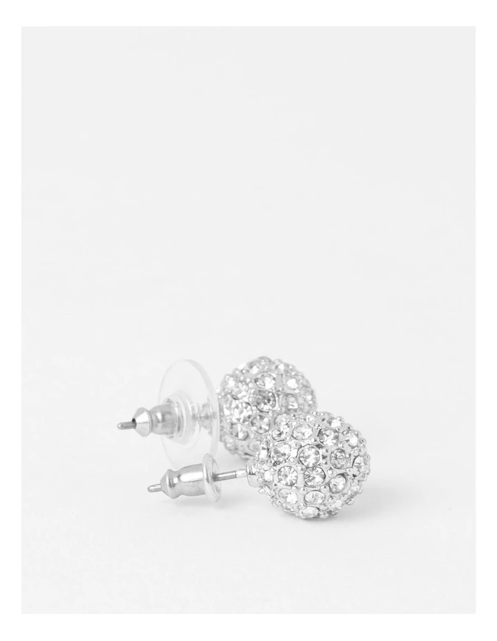 Add the perfect finishing touch to your look with a pair of stud earrings. These dome-shaped studs are adorned with eye catching stones in a pave setting. Style with your favourite silver toned jewellery for a charming look.
