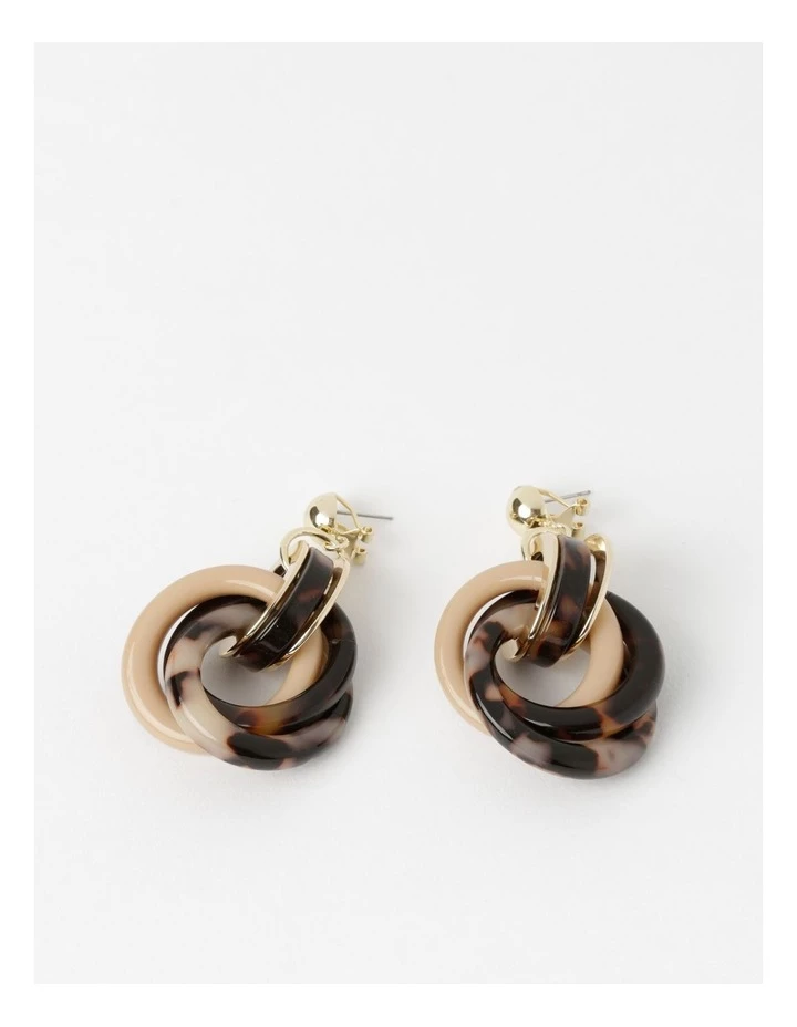 Add the perfect finishing touch to your look with a pair of drop hoop earrings. These earrings are decorated with tortoiseshell detailing on a gold toned setting. Perfect for elevating your everyday outfits.