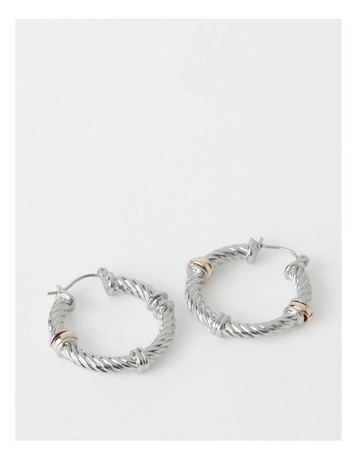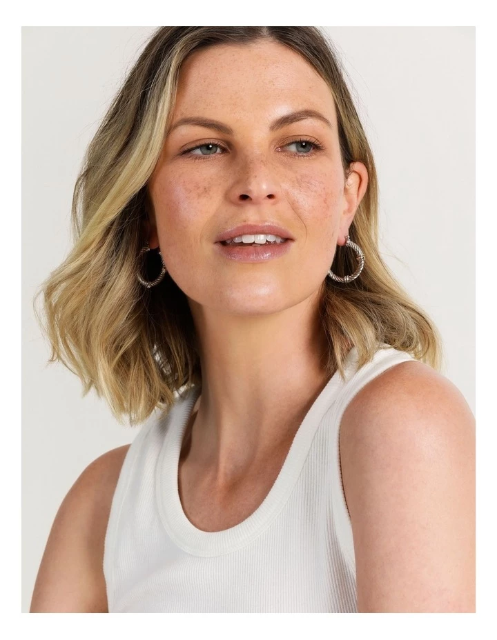 Everyone needs a good pair of hoops. These earrings are silver-toned, and boast a unique twisted design that is sure to draw attention. Pair with your favourite silver jewellery for maximum impact.