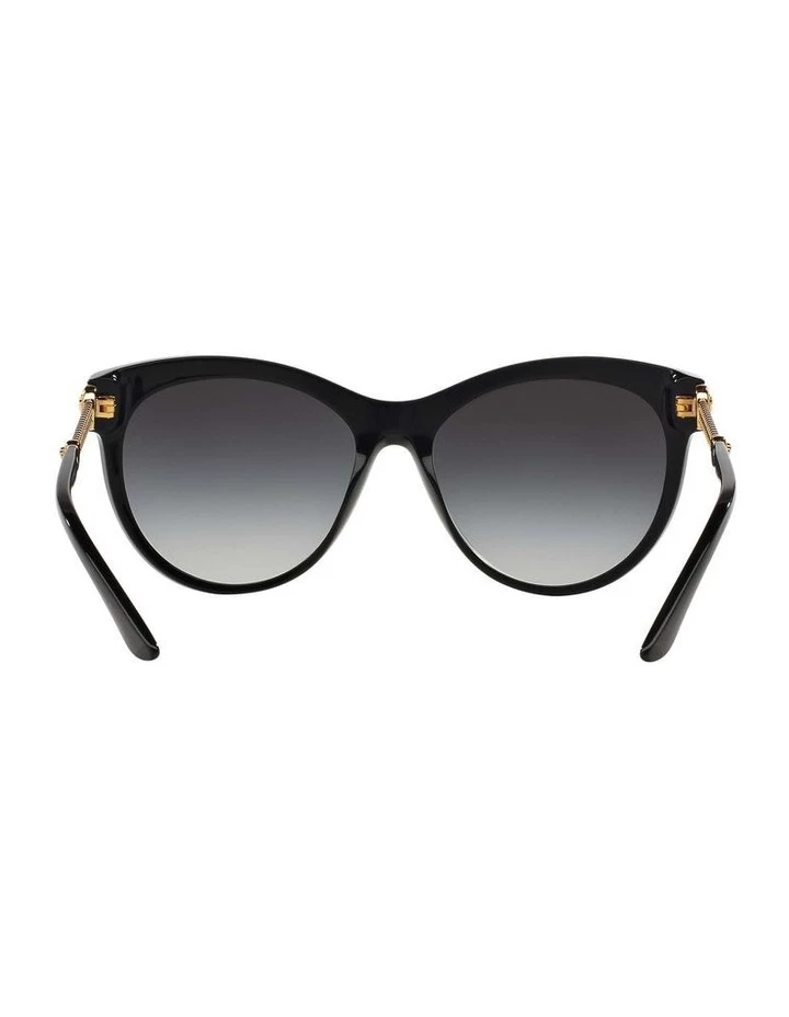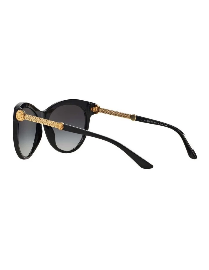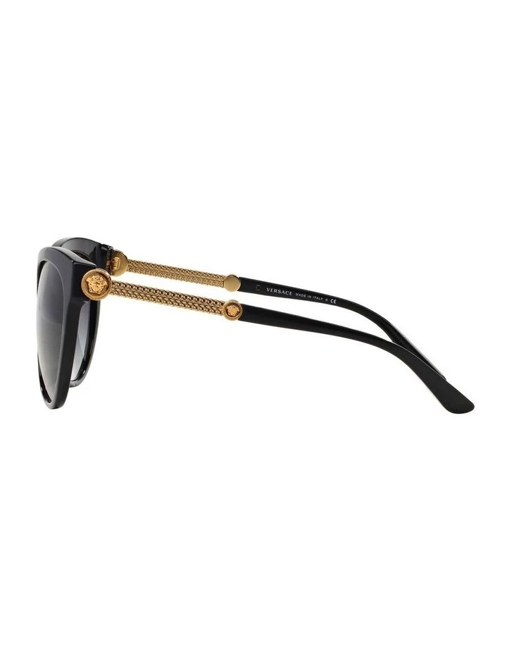 Versace phantos black acetate sunglasses with light grey/dark blue gradient lenses. Come in a designer-stamped case.