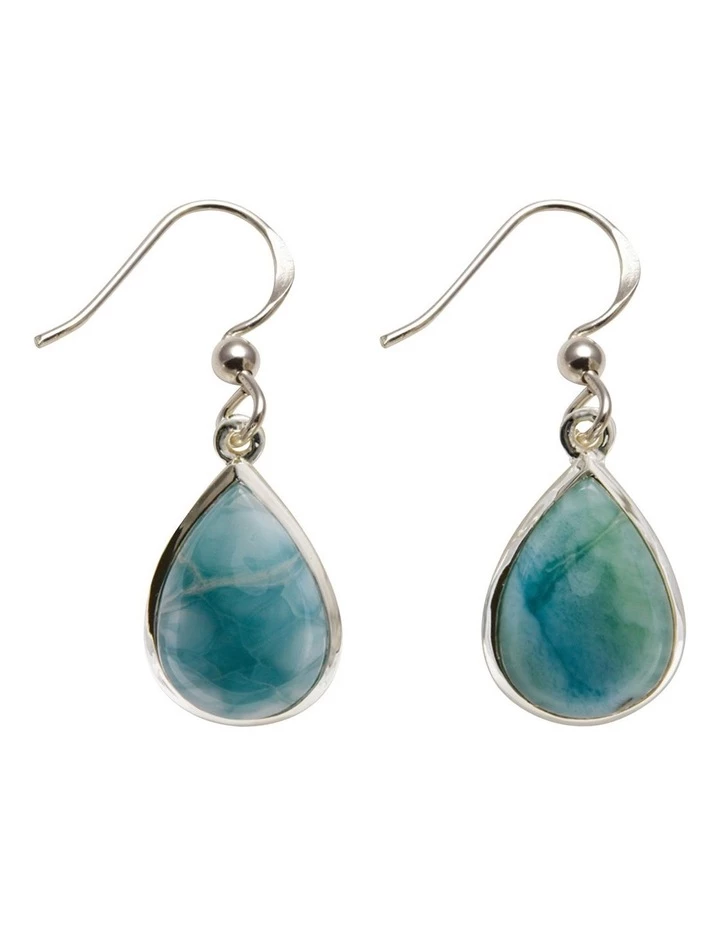 Hook earrings with pear shaped larimar.