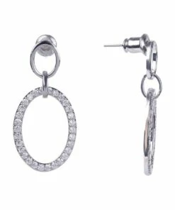 Gregory Ladner Oval With Micro Cubic Zirconia Silver Drop Earrings