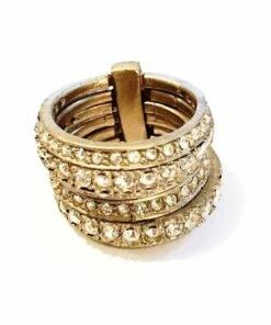 La Florentina Giora Multiple Ring White and Green Swarovski Crystals Bronze