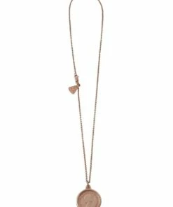 Mocha Belcher Chain Necklace Six Pence Pendant 14K Rose Gold Vermeil Necklace