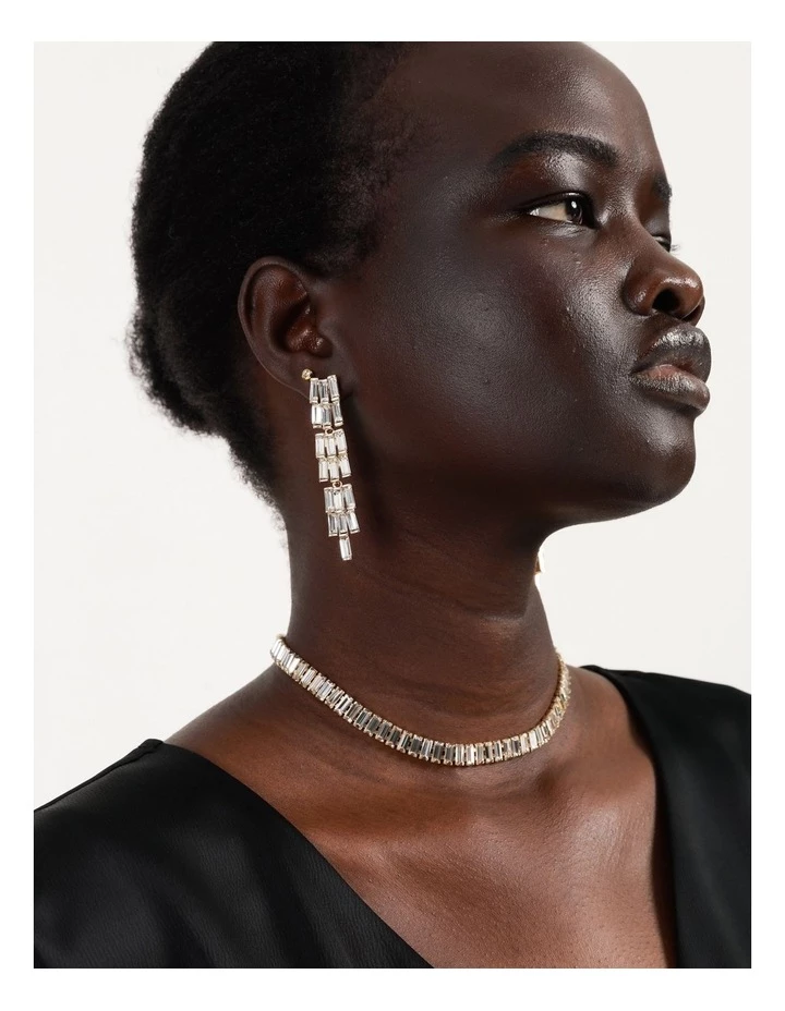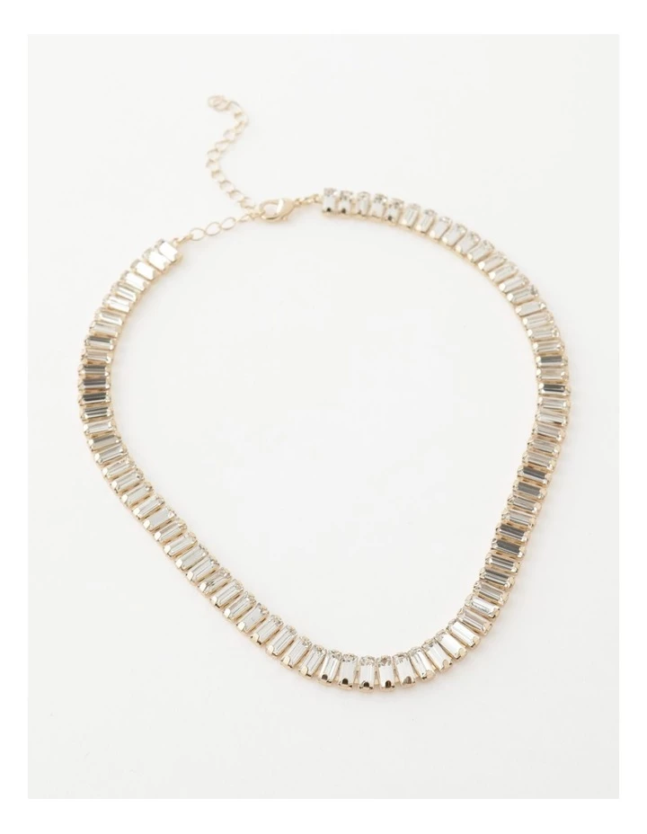 Leave a lasting impression with a statement choker. This choker has a baguette style, adorned with eye catching stones in a rose gold toned setting. Pair with your favourite evening wear for an event ready finish.