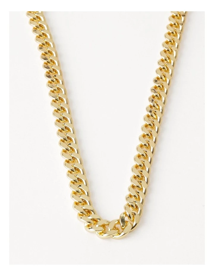 Leave a lasting impression with a fashion forward necklace. This necklace boasts a chunky curb chain in a gold toned finish. Pair with your favourite evening wear for an event ready look.