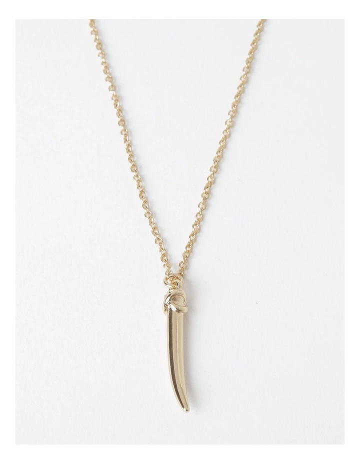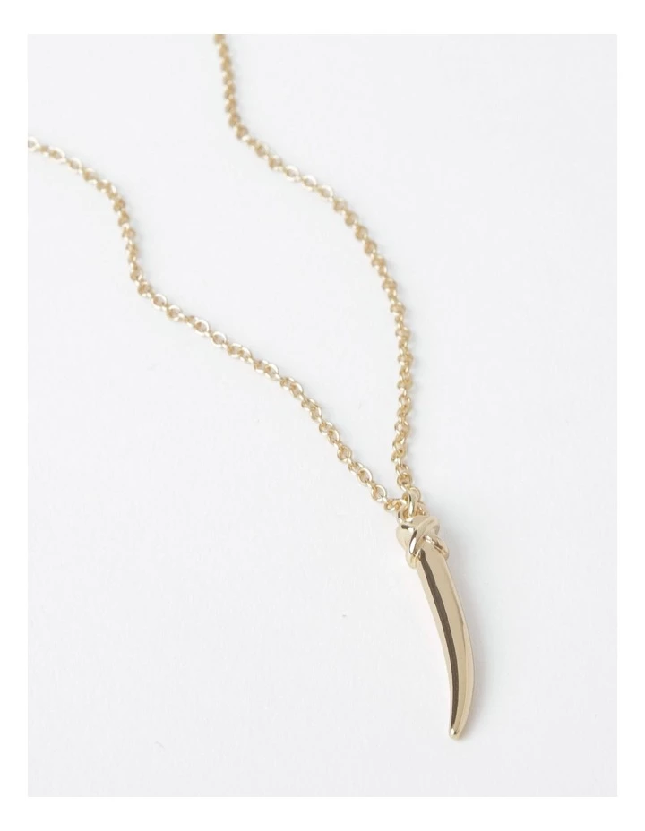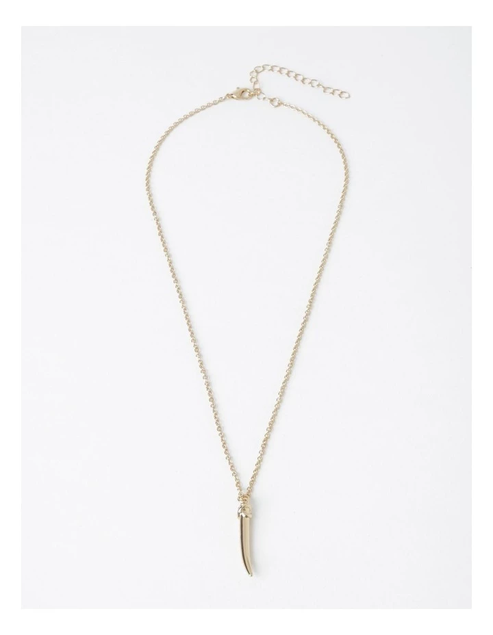 Add the perfect finishing touch to your outfit with a pendant necklace. This necklace has a gold toned finish, with an eye catching horn pendant attached to a thin chain. Layer with your favourite gold jewellery for maximum impact.